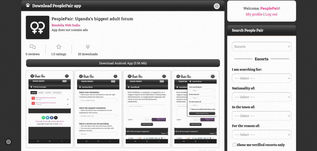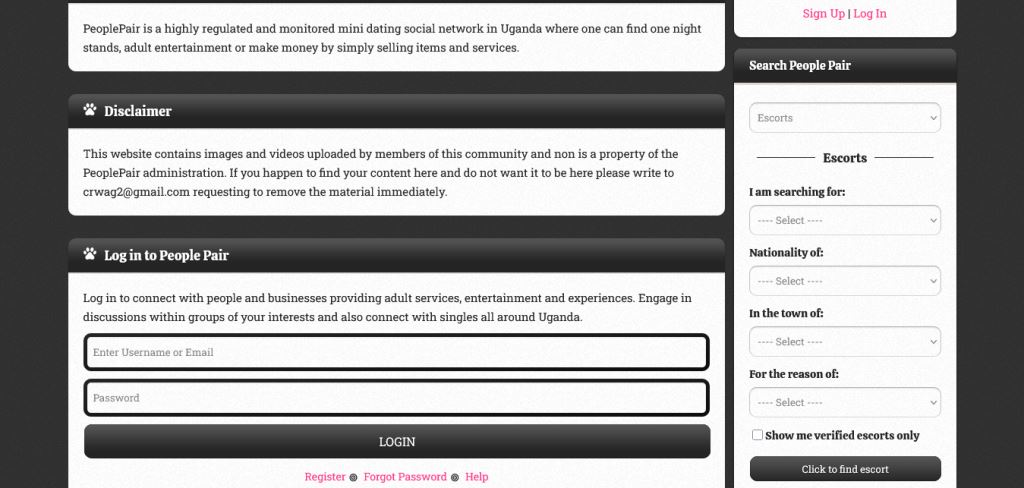 PeoplePair is a Uganda-based social networking platform, developed by Bendella Web Studio, designed for adults aged 18 and above to connect with others who share similar sexual interests, fantasies, and desires. The website provides a secure, inclusive, and discreet environment tailored to the Ugandan community, enabling users to explore connections and share personal content responsibly.